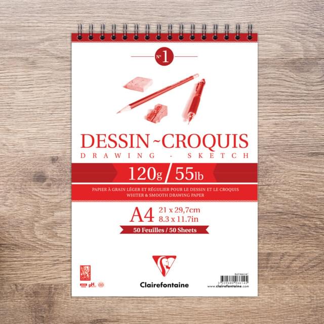 CF0096614 CF0096614 *CLAIREFONTAINE A4 DESSIN CROQUIS 120g SPIRAL DRAWING PAD. Contains 50 sheets of light grained (ie.smoother than Dessin a Grain grade) drawing paper in a srial bound pad. In stock Login For Price