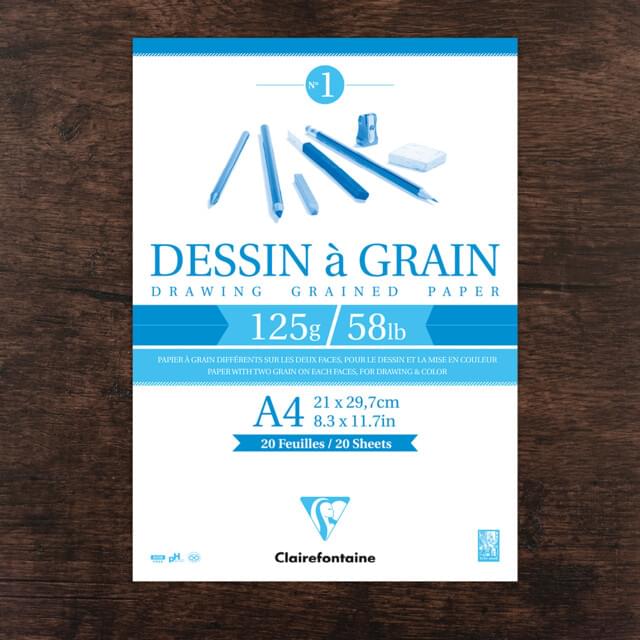 Grained drawing paper. Natural white and acid-free, this paper has a pronounced grain on one side that holds pigments well, making it ideal for dry media such as pencil, pastel and charcoal. Also recommended for ink and the 224gsm weight will accept gouache and light watercolour washes.