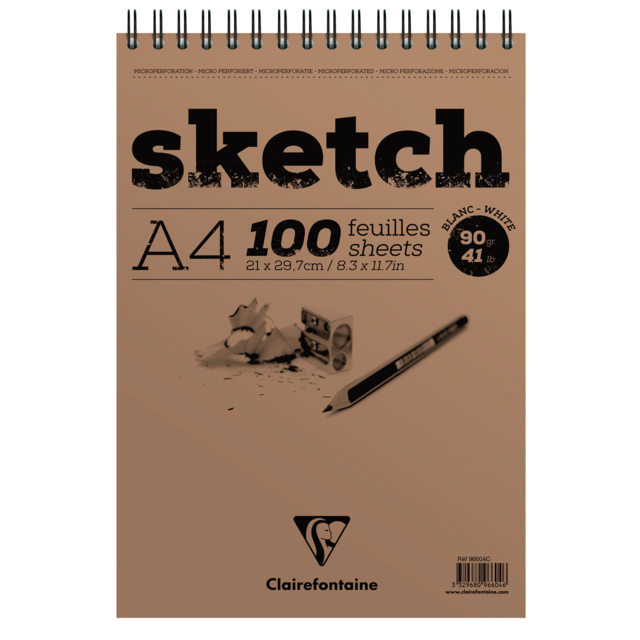 CF0096604 CF0096604 CLAIREFONTAINE SPIRAL SKETCH PAD 90gsm A4 WHITE Pad 100 In stock Login For Price