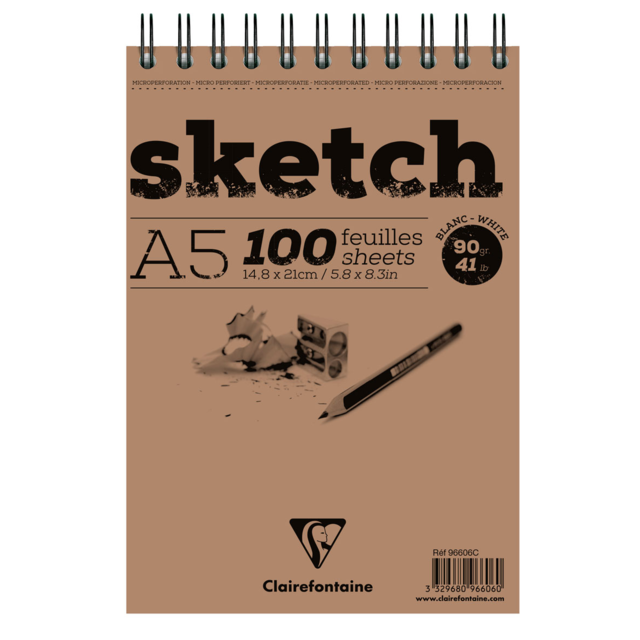 CF0096606 CF0096606 CLAIREFONTAINE SPIRAL SKETCH PAD 90gsm A5 WHITE Pad 100 Available soon Login For Price