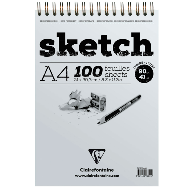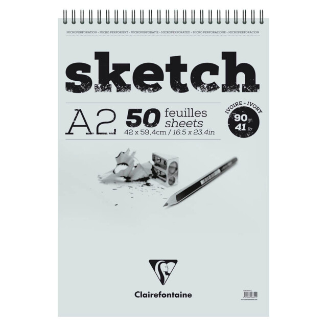 Clairefontaine Sketch Pads contain a light grain, 90gsm paper in either white or ivory shades that is well suited to all dry media techniques including graphite, charcoal, chalk, sanguine, pen and ink. The basic paper for every artist. Sheets are micro-perforated.