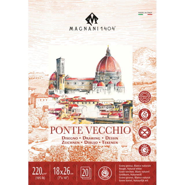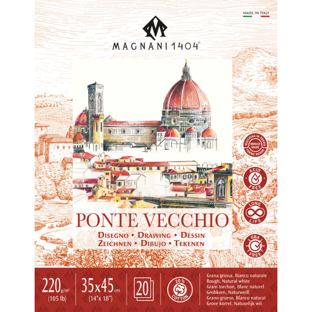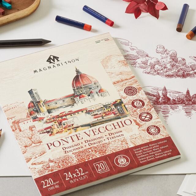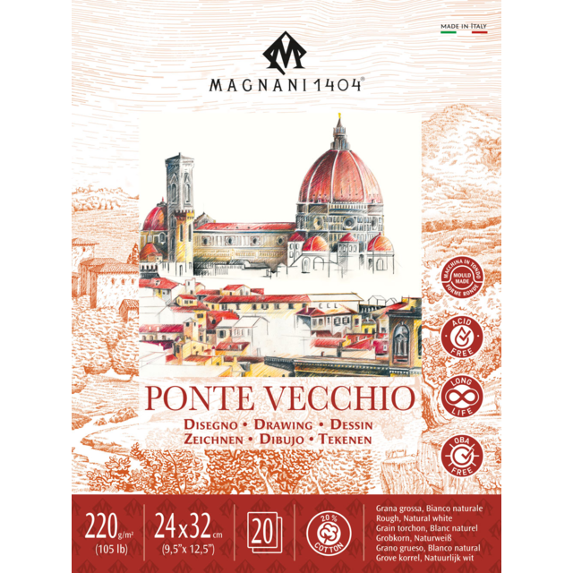 Magnani Ponte Vecchio grained drawing paper is made on a cylinder mould machine, using processes that have been handed down from generation to generation.