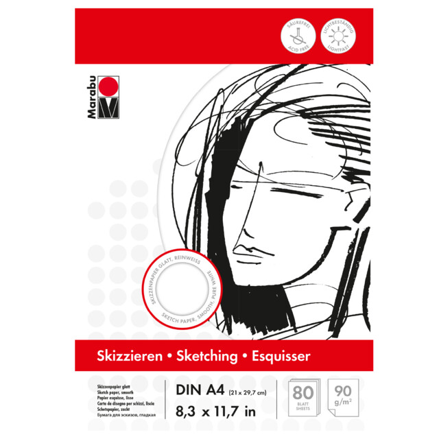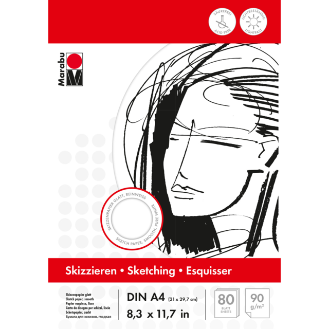 Marabu's Graphix sketch pad feature 80 sheets (160 pages) of 90gsm white, premium quality 100% cellulose, German made drawing paper and is glued at the top with overlay cover. Perfect for pen & ink work,sketching and drawing. The paper is lightfast and acid free allowing true colours to be reproduced.