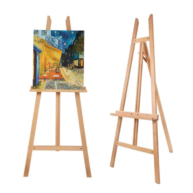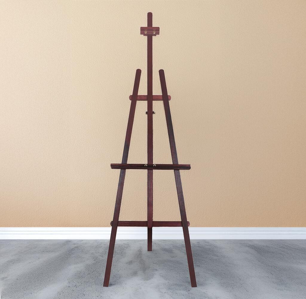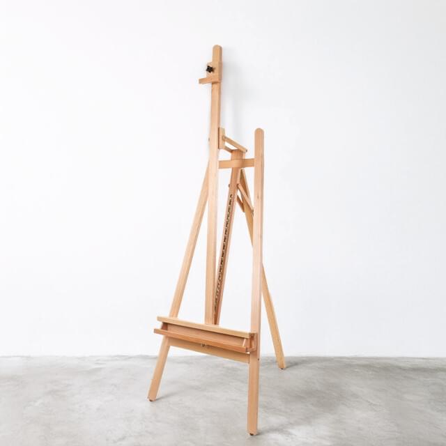 A-frame easels are easels that are triangular in shape and have three legs; two in front and one behind. They are easy to store away because their third leg can be pushed forward to flatten them. They are fragile and not as dense as other easel types.