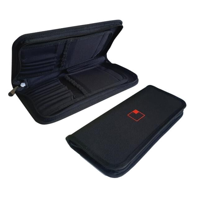 SHINHAN 12 SHORT HANDLE EMPTY BRUSH CASE. A durable yet lightweight, fabric brush holder to effectively store and protect 12 short-handled brushes up to 27cm in length. Features 12 brush pockets with elastic retainers for flexible, optimal storage together with a wrist strap for portability. |