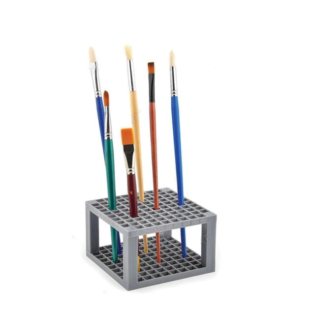 STUDIO 96 HOLE BRUSH/PENCIL STORAGE RACK. Compact, plastic, studio storage unit holding up to 96 pieces of your choice. Can be used for storing brushes, pencils, fineliners, stencil knives etc. Rack measures 14.5x14.5x9cm. |