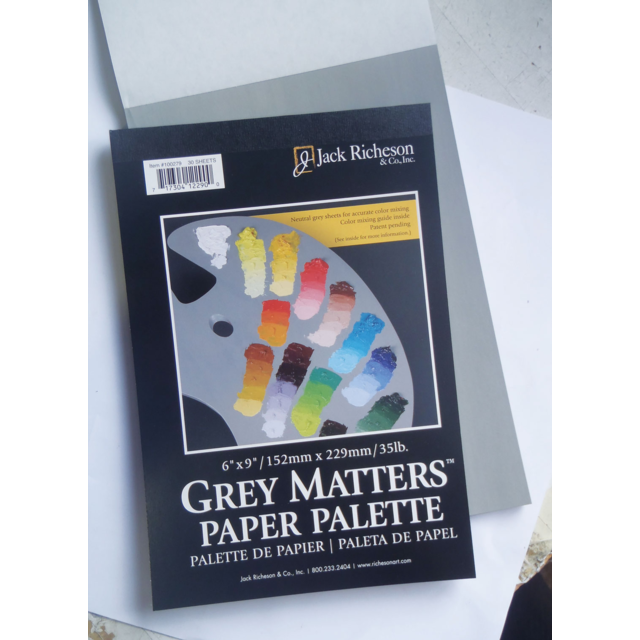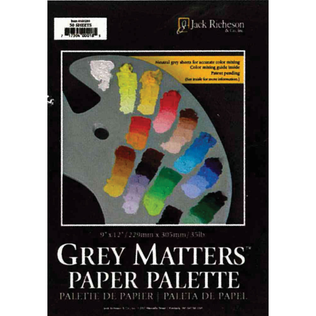 RICHESON DISPOSABLE GREY PAPER PALLETE 9x12in. Grey paper provides a neutral backdrop on which to view colours and mixed colours appear on the palette as they will in the painting. 5gsm, acid free. |
