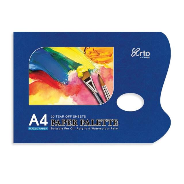 ARTO DISPOSABLE PAPER PAINTING PALETTE PAD A4. Pad contains 30 sheets of quality 90gsm bleed proof paper in A4. Adjacent thumb hole for comfort and support. |