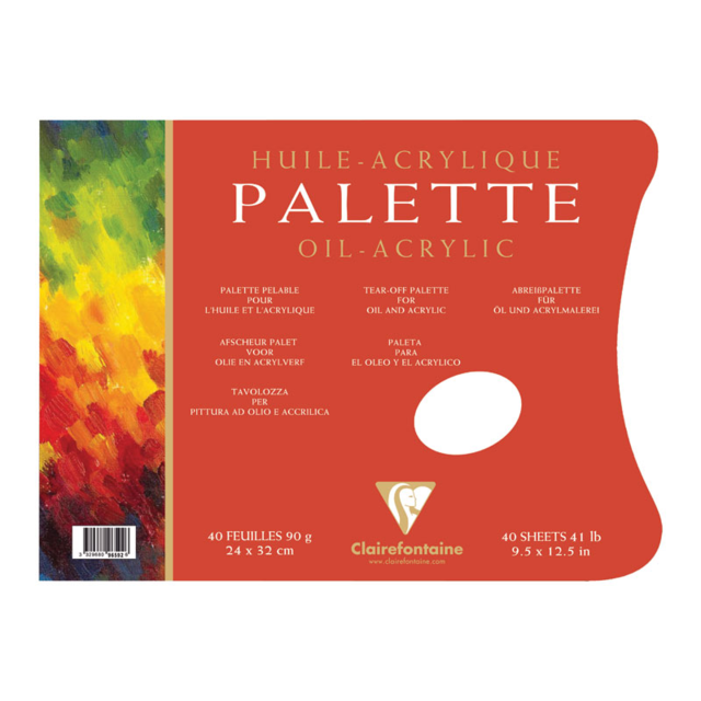 *CLAIREFONTAINE TEAR-OFF 90g PAPER PALETTE 24x32cm. Pad contains 40 sheets of quality 90gsm bleed proof paper. Adjacent thumb hole for comfort and support. |