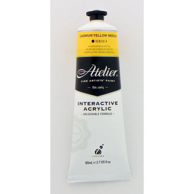 ATELIER INTERACTIVE ARTISTS' ACRYLIC SERIES 4 - 250ml CADMIUM YELLOW MEDIUM. The pigments in Cadmium colours can be toxic if not handled correctly. NOT RECOMMENDED FOR STUDENTS. |