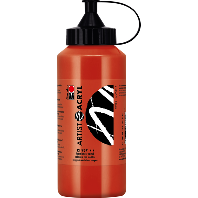 MARABU ARTIST ACRYLIC 500m l -CADMIUM RED MIDDLE. The pigments in Cadmium colours can be toxic if not handled correctly. NOT RECOMMENDED FOR STUDENTS. |
