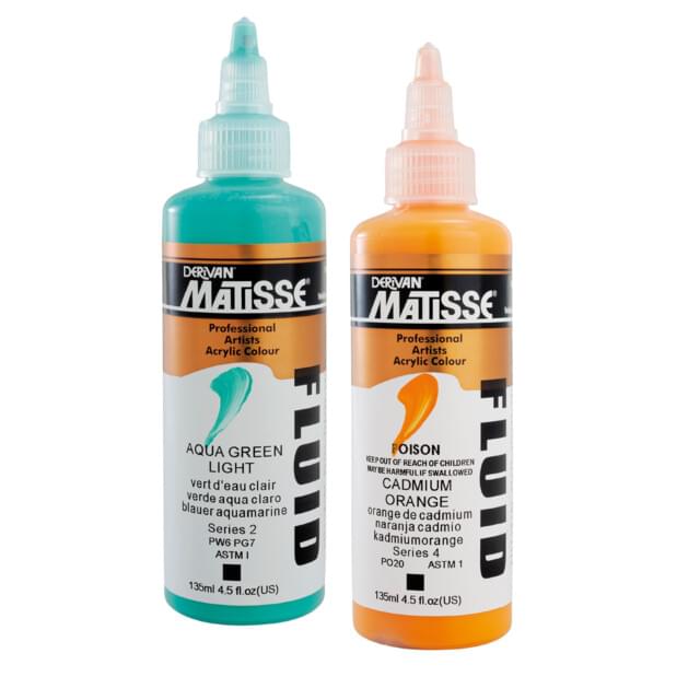 Matisse Fluid Acrylic Colours - highly pigmented liquid-like paint for artists. As the name suggests, this is a very liquid but highly pigmented fluid paint. Runny but has a slightly dense viscosity lends this paint to be used for fine brushwork with or without water dilution. The intensity of colour makes it ideal for tinting.