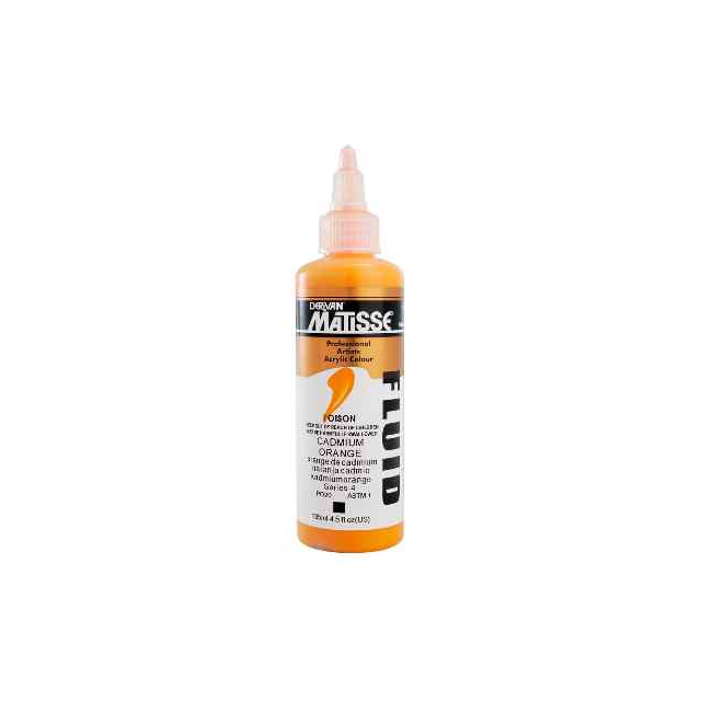 MF135CO MF135CO MATISSE FLUID ACRYLIC SERIES 4 - 135ml CADMIUM ORANGE. The pigments in Cadmium colours can be toxic if not handled correctly. NOT RECOMMENDED FOR STUDENTS. Available soon Login For Price