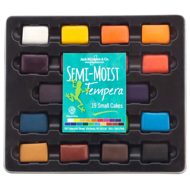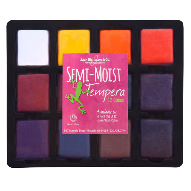 Richeson semi-moist tempera colours are premium quality opaque watercolours that represent excellent value-for-money. Students will appreciate the benefits of these superior liquid-poured, semi-moist pan colours over the traditional extruded, dry-cake opaque watercolour pans - no more scrubbing with a wet brush to release the colours as the colours are instantly available upon contact with water. Colours conform to ASTM D-2436 standards and carry ACMI AP (non-toxic) seal of approval.