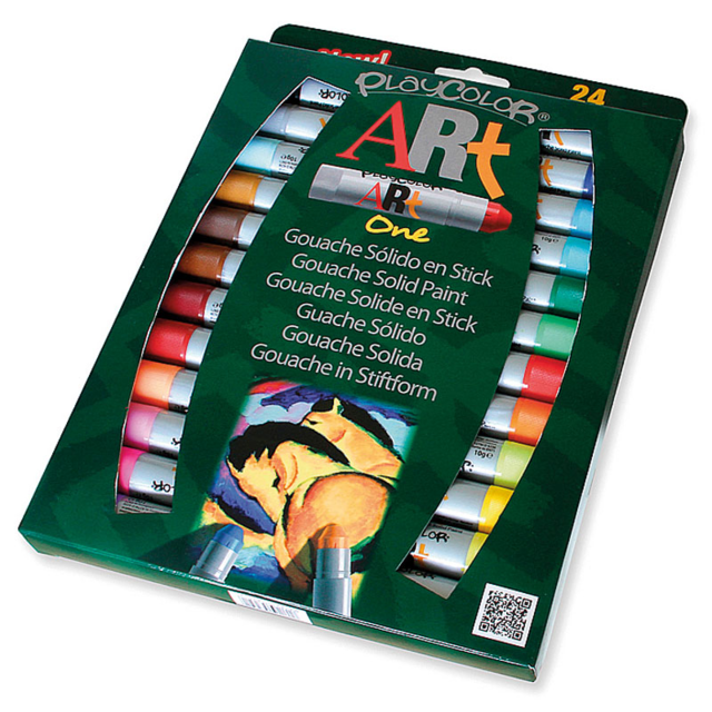 DG58251 DG58251 PLAYCOLOR ART SOLID GOUACHE STICKS SET 24x10g. This set of 24 includes a full spectrum of colours that includes white, yellow 1,2 & 3, orange, red, greens 1 & 2, turquoise, blue 1 & 2, violet 1 & 2, fuchsia, pink, flesh, sanguine, garnet, brown, tobacco, ochre, bluish grey and black. Available soon Login For Price