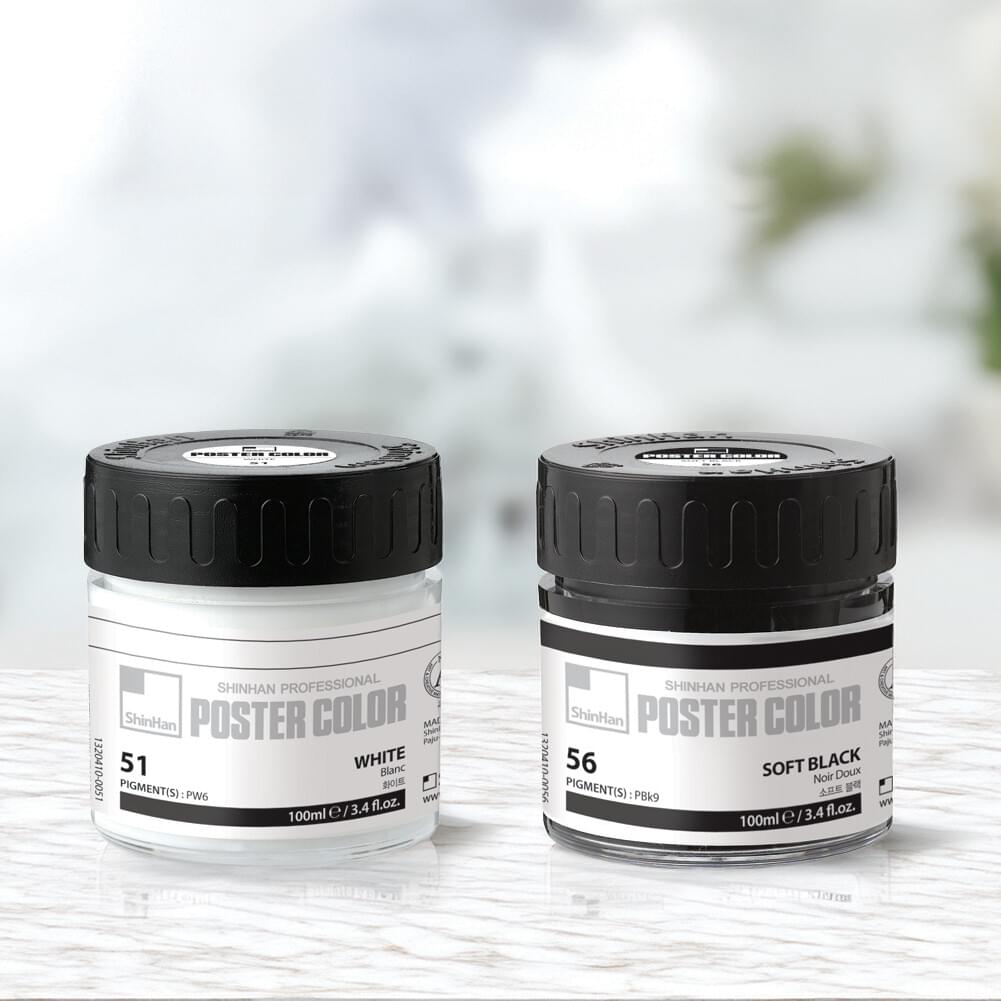 Available in sets of 12 and 24 vivid colours, Shinhan sh Poster Colour is loved by both fine art students and professionals. They are frequently used for illustration and mixed media being suitable for everything from abstract, geometric backgrounds to delicate design techniques. Shinhan Poster Colour has superior opacity and colour blending and when mixing colours, their high chroma with bright, vivid tones are never lost.