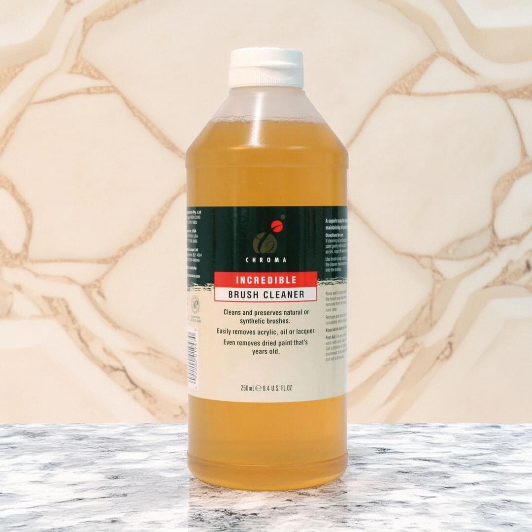 CHROMACRYL INCREDIBLE BRUSH CLEANER 250ml. This cleaner is made from a special formulation that has been designed to break through hardened acrylic, oil or lacquer on natural and synthetic paintbrushes. |