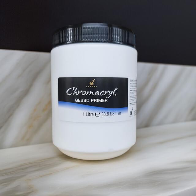 CHROMACRYL MEDIUM 500ml GESSO PRIMER. For sealing and preparation of canvas, cardboard, paper etc. Excellent covering power with a smooth, even finish and very fine tooth. |