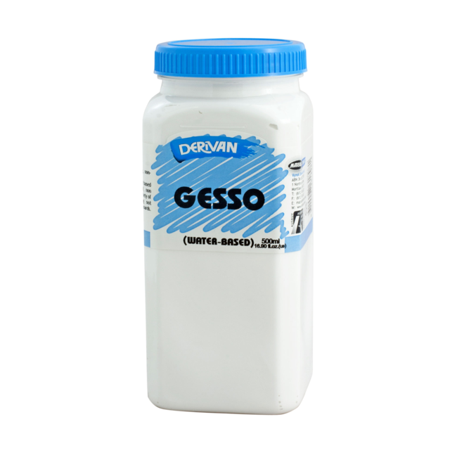 DERIVAN 500ml ECONOMY GESSO. A very economic primer for canvas or board. Serves as a suitable non-cracking painting ground for acrylics. Low sheen finish with pleasant granular tooth to prevent brush slippage. |