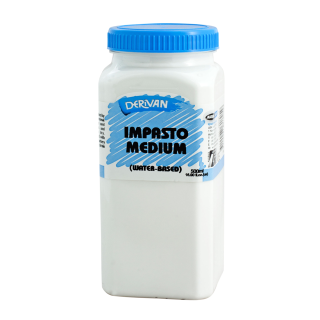 DERIVAN 500ml IMPASTO MEDIUM. Imparts knife edge structuring qualities to paints without colour distortion. Ideal for simulated oil painting, texturing and three dimensional effects. Does not crack or shrink. |
