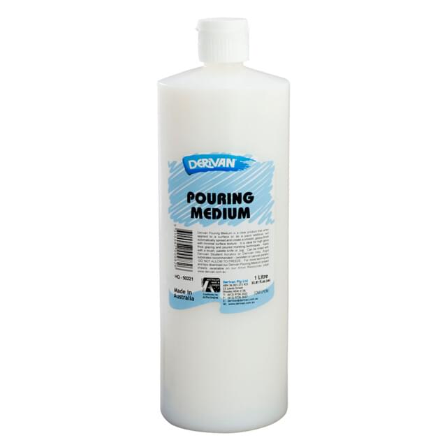 #DERIVAN POURING MEDIUM 1 Ltr. Can also be used as a high gloss varnish. Using a brush is recommended when varnishing flexible surfaces to avoid pulling due to surface tension of the product. If pouring, it must go onto a rigid substrate. Water based and non-toxic. |