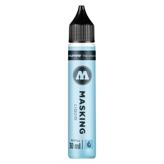 Masking fluid allows the artist to block out areas so that they do not want to accept colour. Used to create striking white highlights or areas for over painting at a later stage. Forms a fast drying water-resistant film on watercolour paper and board, easily removed when dry by rubbing with an eraser, soft tissue or cotton bud. An old brush, pen or cotton bud should be used to apply the Masking Fluid as it is extremely difficult to remove from brushes once dry.