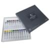 SHINHAN 7.5ml ARTISTS WATERCOLOURS - Set 18. Contains one 7.5ml tube each of white, black, ultramarine, yellow green, permanent yellow deep, red, brown, violet, prussian blue, viridian, lemon yellow, vermilion, yellow ochre, cerulean blue, sap green, van dyke brown, cobalt blue and olive green. |