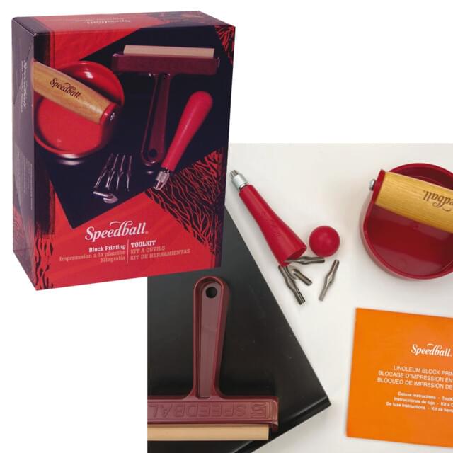 ESSDEE ESSENTIALS BLOCK PRINTING KIT. This Lino Printing Essentials Kit provides the tools and materials you need to create your own prints. The kit includes 1 x 100ml Block Printing Ink, 1 x Roller, 1 Handle, 3 x Cutters, 1 x SoftCut Carving Block and instructions. |