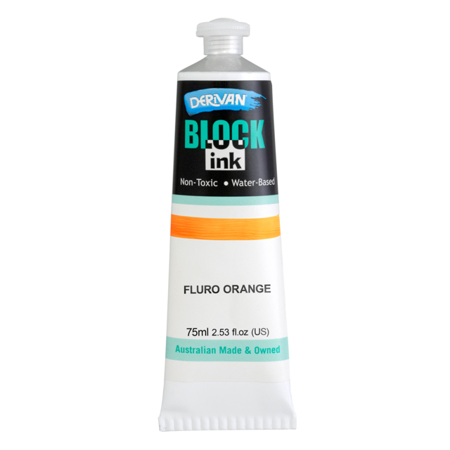 DERIVAN BLOCK PRINTING INK 75ml FLUORESCENT ORANGE |