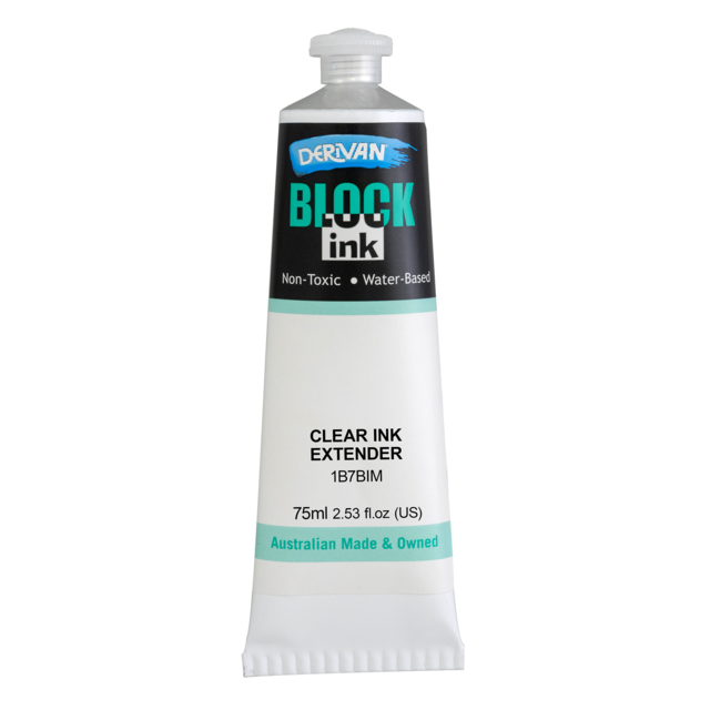 DERIVAN BLOCK PRINTING INK 75ml CLEAR MEDIUM (EXTENDER). Use to extend non oil-based block printing inks by adding up to 1 part medium to 1 part colour without altering the intensity of the colour. Above a 1:1 ratio, the more medium added, the more transparent the colours become. |