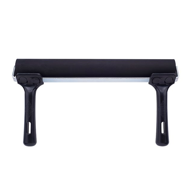 Speedball Brayers: Made from soft, natural latex gum rubber with a precision-ground finish, Speedball Soft Rubber Brayers are ideal for use with linoleum, soft block, or woodcut. The heavy-duty steel frame provides enhanced durability and the flexibility of the 40/42 durometer soft rubber ensures even ink distribution. Available in a range of sizes they work well with both water-soluble or oil-based printing inks.