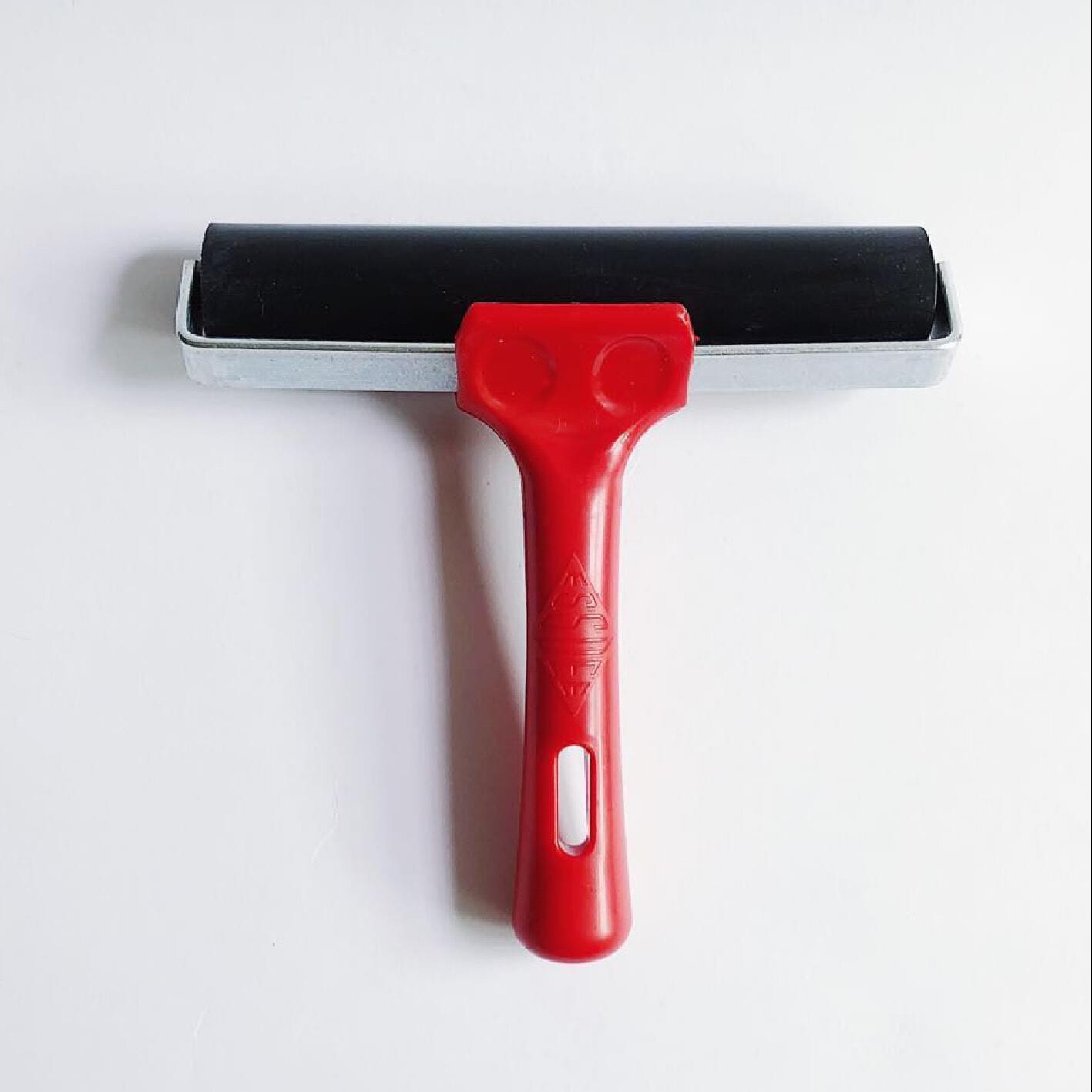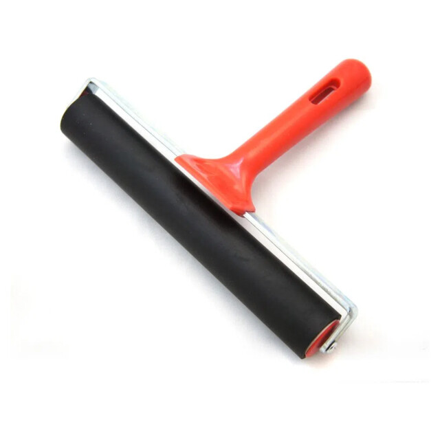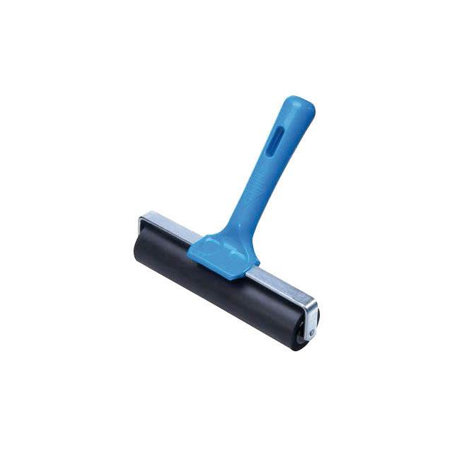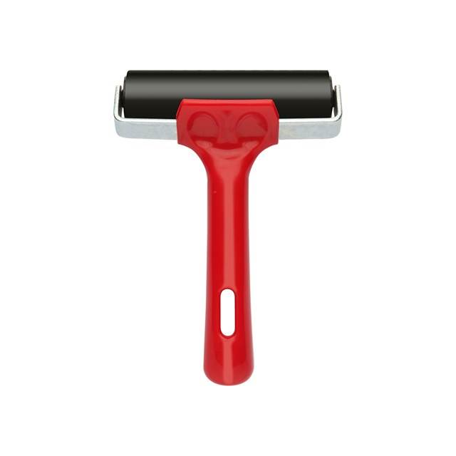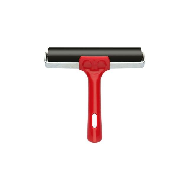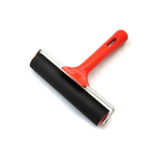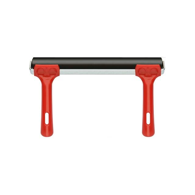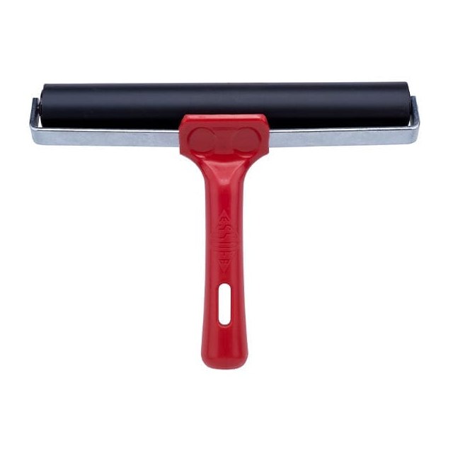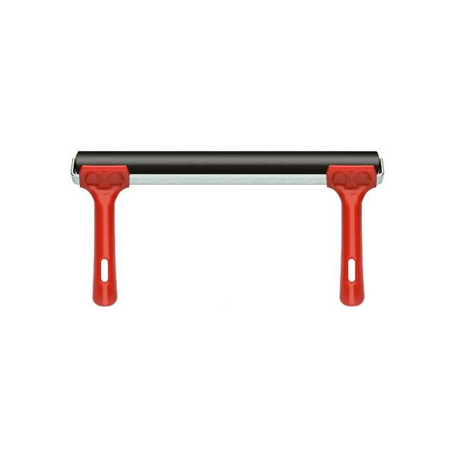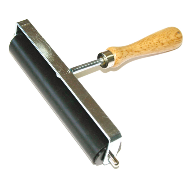 Standard Hard Rubber Roller: A basic hard rubber roller with steel frame moulded plastic handle or comfortable wooden handle. The finger indents on the handle help with even pressure distribution when inking plates.