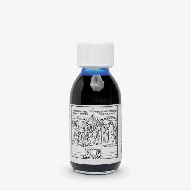 ARTOOLS PROTECTING/AQUATINT VARNISH/GROUND 125ml. This varnish forms a very tough, protective coating for the backs and borders of plates. It is highly resistant to acid, heat and additional scratching of the plate's back surface. It also serves as an excellent stop-out varnish. It dries well and allows remarkable nuancing. The most diluted applications become extremely pastel-like mezzotint, while thick applications result in perfect whites. The bottle is supplied complete with safety cap. |