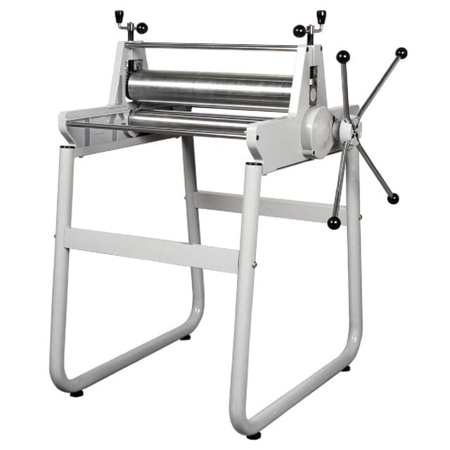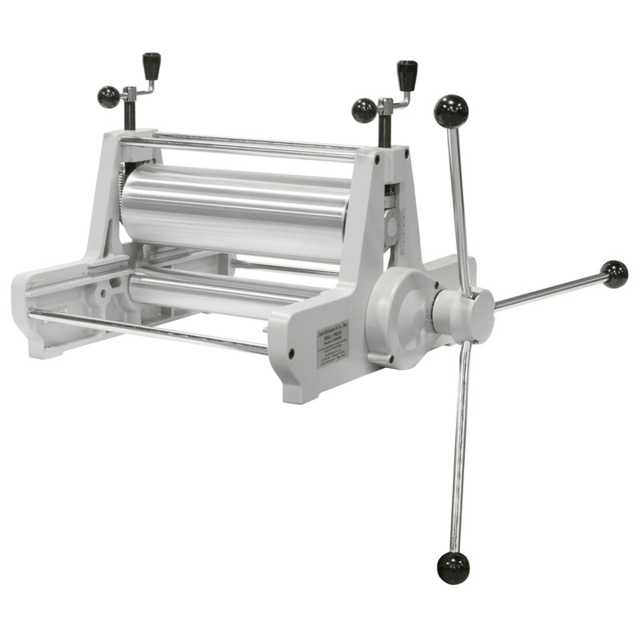 *RICHESON UNGEARED A3+ (240x455mm) ETCHING PRESS. This press is the ideal printing press for beginners, schools or the professional printmaker who requires a ruable yet portable press. Maximum print sixz achievable is A3+ (240 x 455mm). NB: Supplied as press only. Does not include blankets or bedplate. These must be ordered seperately. |
