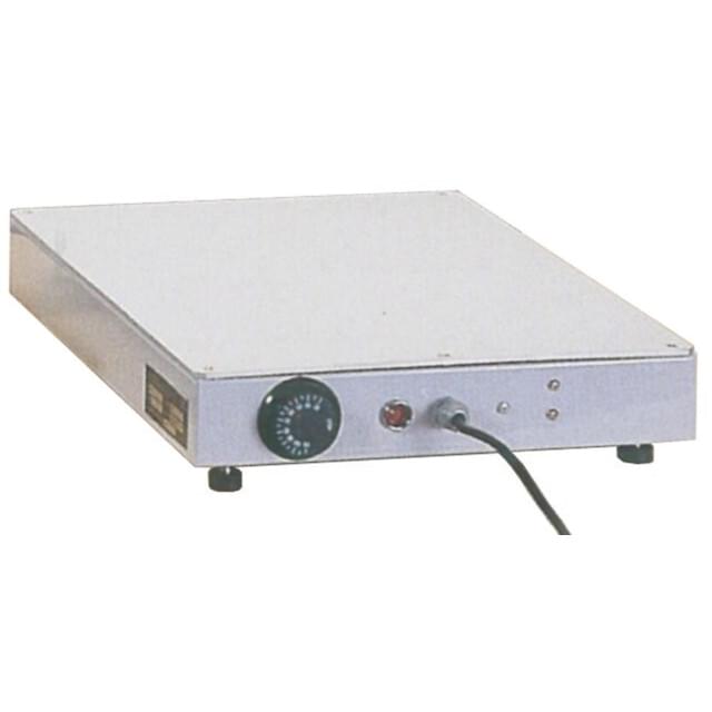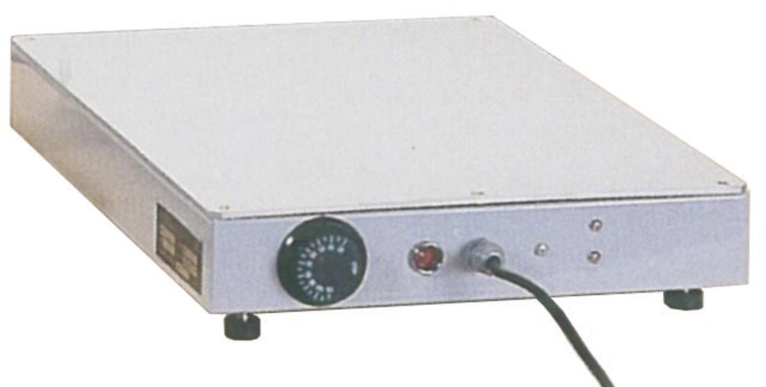 Varnished steel and plated heavy aluminium warming surface which guarantees an even warming of all types of metal etching plates - no hot spots! Avoids heating deformation. Warming surface size is 35 x 50cm with a max. temperature of 48°C. The Fome warming plate is the safest way of heating your etching plates. 220/240 Volts, 360 Watts.