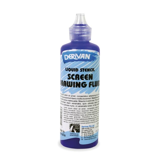 #DERIVAN SCREEN DRAWING FLUID 135ml. Use the Derivan Screen Drawing Fluid with a brush or directly from the bottle onto the silkscreen to create a hand-painted design. It makes creating hand-drawn prints a breeze. This straightforward process is ideal for all ages, perfect for the art studio, classroom or dining table. Non-toxic. |