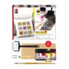 MARABU TEXTIL SOFT LINO PRINTING/COLOURING KIT. A direct printing process - the printing plate transfers the ink directly onto the fabric. Colour the print motifs afterwards with Textil Aquarelle. Set contains 1 x100 ml Textil Print carbon black, 2 x 15 ml Textil Aquarelle in lemon and magenta, foam roller, cutting tool with 2 blades, soft-cut block (15.5 x 9 cm), brush size 12, design template and instructions. |
