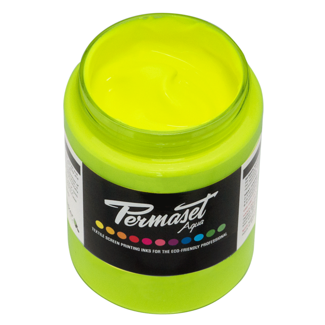 COLORMAKER PERMASET AQUA SCREEN PRINT INK 300mL GLOW YELLOW. Use for very bright fluorescent colours |