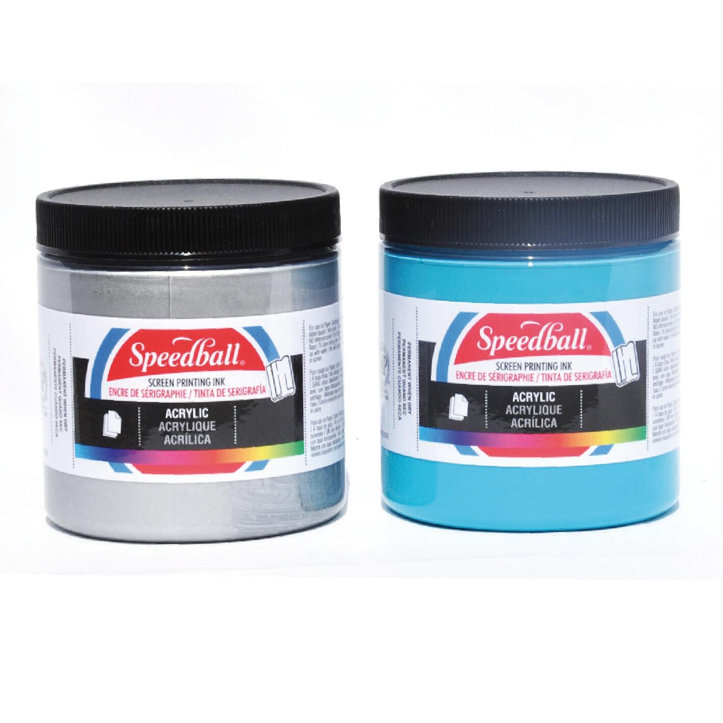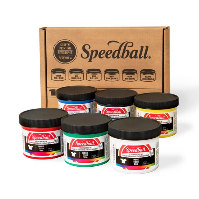 SPEEDBALL FABRIC SCREEN INK STARTER SET 6x118ml (4oz). Contains one 118ml jar each of Black, Red, Blue, White, Green and Yellow. |