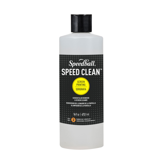 Screen Frame Speed Clean is a is a highly effective screen cleaner that makes removal of Speedball’s screen filler and screen cleaning quick and simple. Apply to both sides of screen, scrub, then apply again. In just 3-5 minutes, screens come clean using hot water and brush.