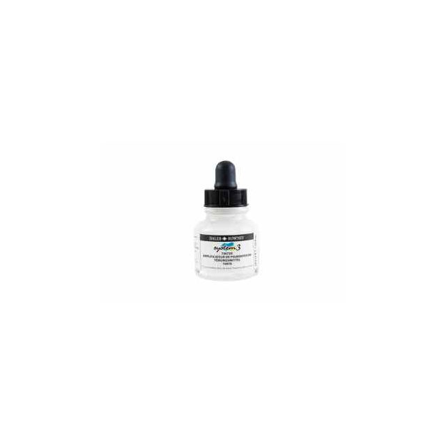 System 3 Tinters: Used for boosting the colour strength of printing ink made by mixing System 3 Acrylic Colour and Printing Medium or Textile Medium. To boost the colour strength of a 50/50 mix, add up to 20% Tinter and mix thoroughly. Brush off dried Tinter from the end of the nozzle before use.