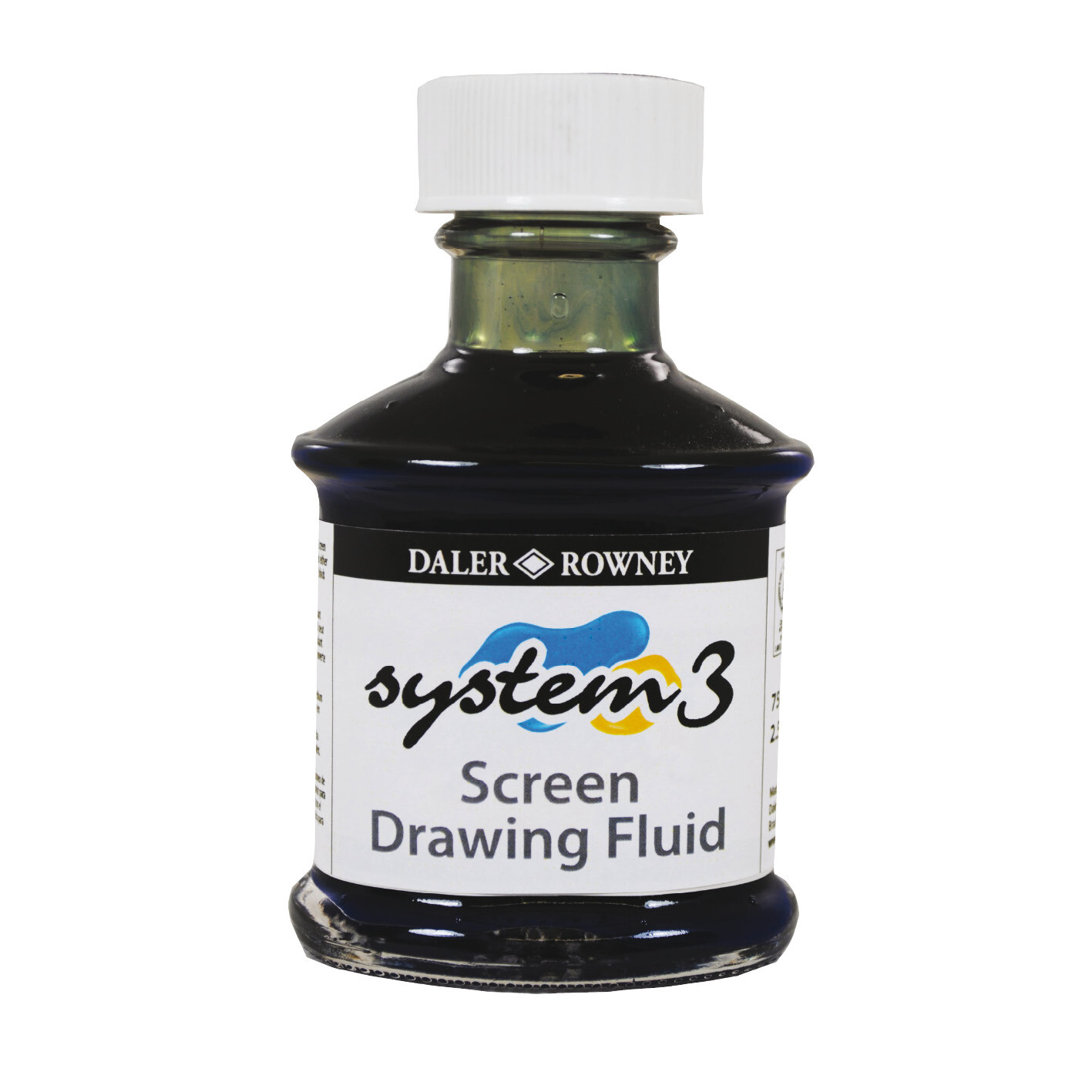 System 3 Screen Drawing Fluid: Screen drawing fluid is applied by brush direct to the screen to create the drawn image. It can be applied neat but will probably require some dilution with water in finer detail areas.