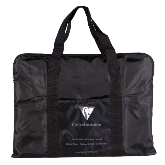 CLAIREFONTAINE 59x75cm ART FOLDER BAG. Durable, black polyamide bag designed to carry and protect art folders. Zip closure and wide straps for easy carrying. Front pocket will hold a small sketchbook. |