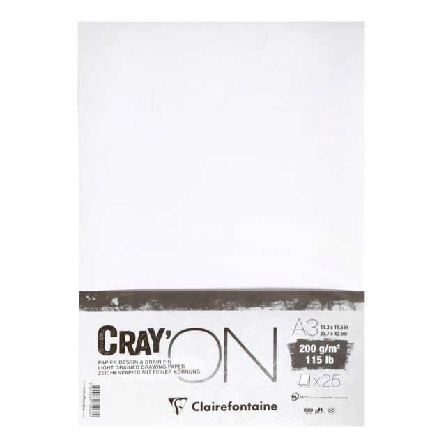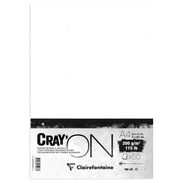 Premium quality, extra-white drawing paper, made from 100% cellulose featuring a light grain on one side and a smooth finish on the reverse. An ideal surface for working with multiple techniques, Cray'On is perfectly suited for sketching, drawing, ink and gouache (in the heavier weights). The sheets are archival and acid-free and possesses a high resistance against scraping and repeated erasures.