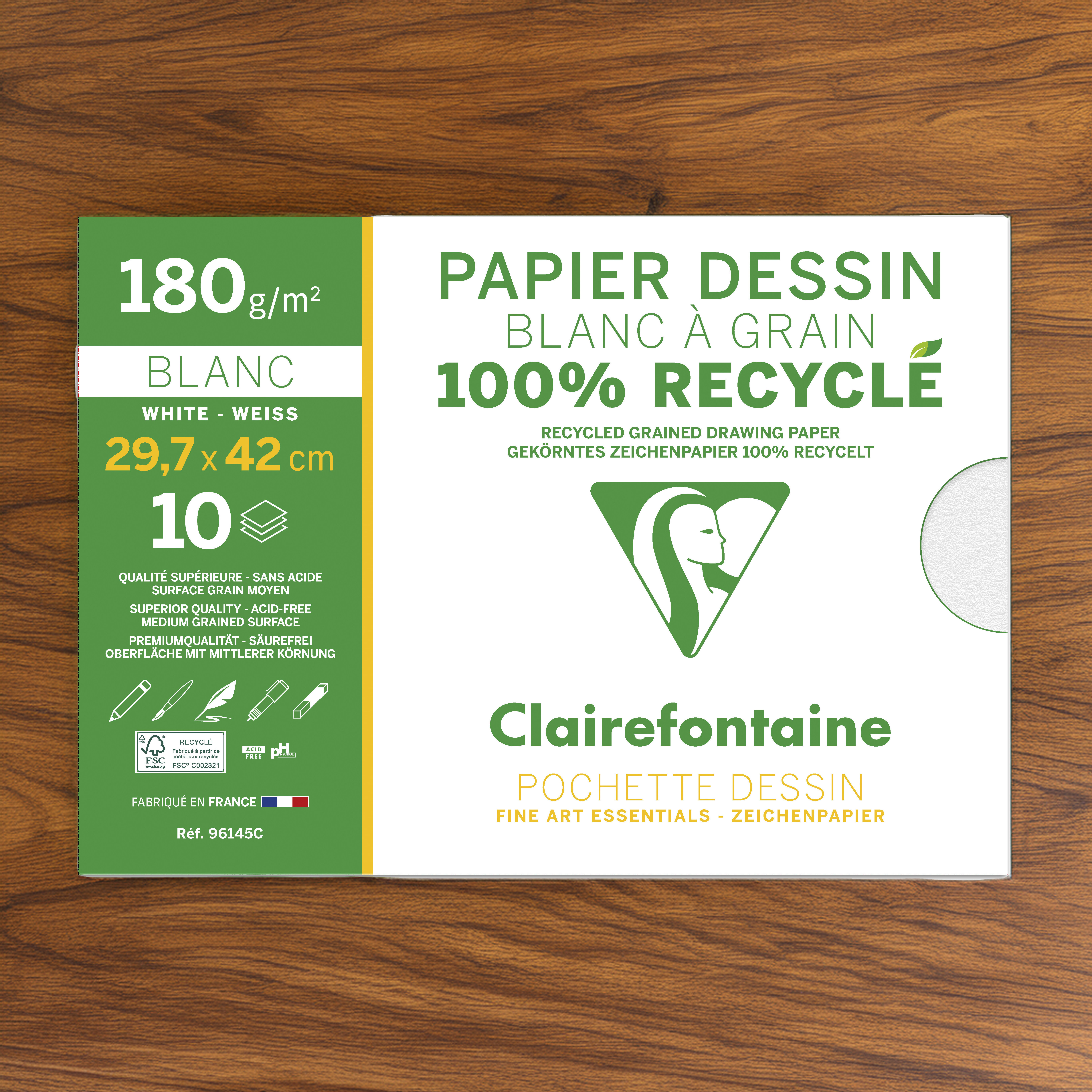 CF0096145 CF0096145 *CLAIREFONTAINE 100% RECYCLED GRAINED DRAWING PAPER 180gsm A3 10 SHEET PACK In stock Login For Price