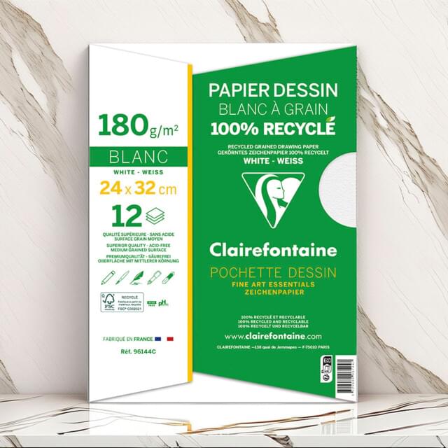 CF0096144 CF0096144 *CLAIREFONTAINE 100% RECYCLED GRAINED DRAWING PAPER 180gsm 24x32cm 12 SHEET PACK In stock Login For Price