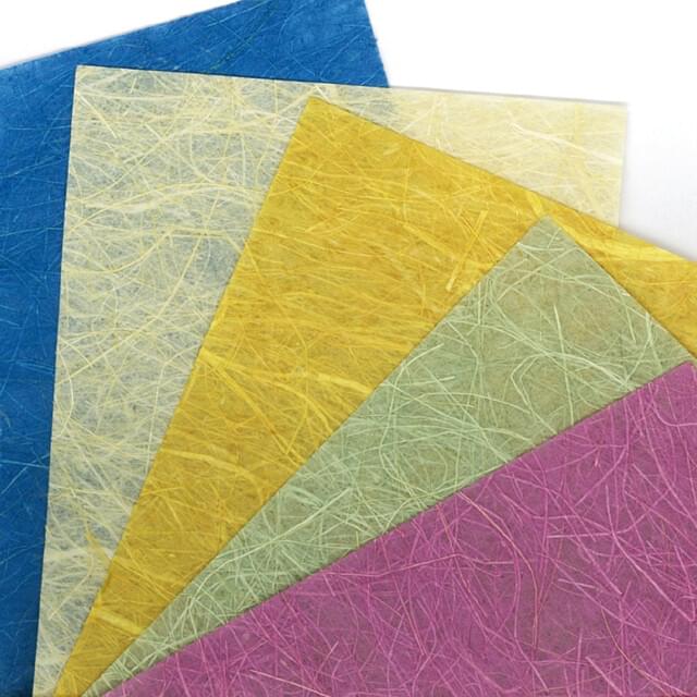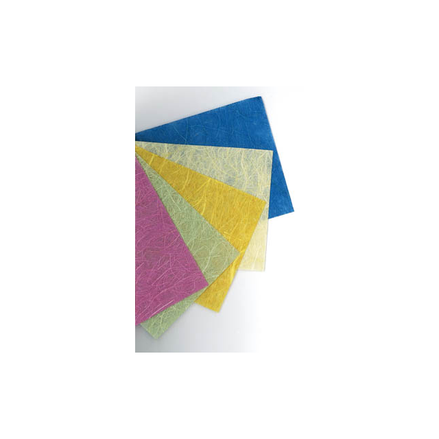 Awagami Kinwashi paper is usually used for decorative purposes and is machine made from 100% hemp fibres and hand-dyed producing a sheet that is smooth on one side and textured on the other with straw-like vegetable fibres. It is 55gsm in weight, translucent and acid-free. Usually used for decorative purposes, Kinwashi is machine made from manila fibres. Sheets measure 64 x 97cm.