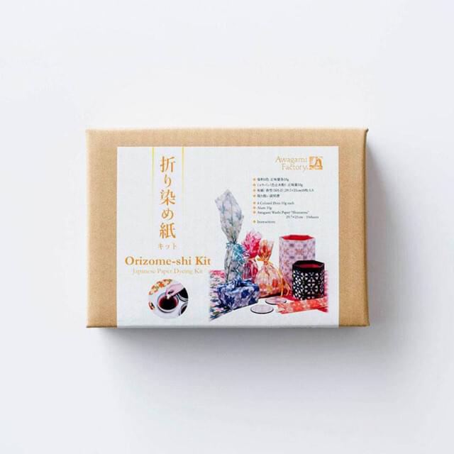 AWAGAMI ORIZOME PAPER DYEING KIT. Orizome is a traditional Japanese paper dyeing technique that creates intricate patterns when the paper is dyed. It combines origami paper folding and coloured pigment dip-dyeing. Combine your favourite colours to make your own unique Orizome paper! Contents: 4 x 10gm coloured dyes, alum x 10gm, 10 sheets x Awagami "Shunsetsu" Washi paper (21x29.7cm) and instructions. |