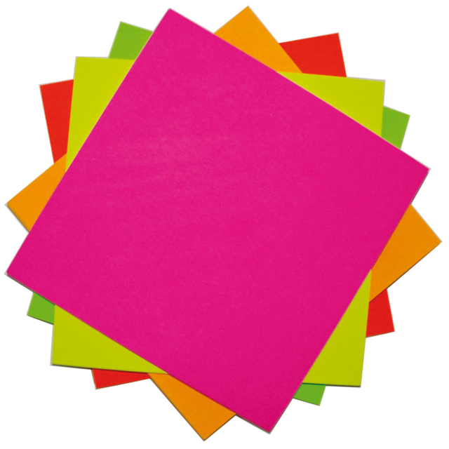 KINDERGARTEN SQUARE FLUORESCENT 10x10in Assorted Pack 100. Contains 20 sheets each of the fluoro green, fluoro yellow, fluoro pink, fluoro orange and fluoro red. |