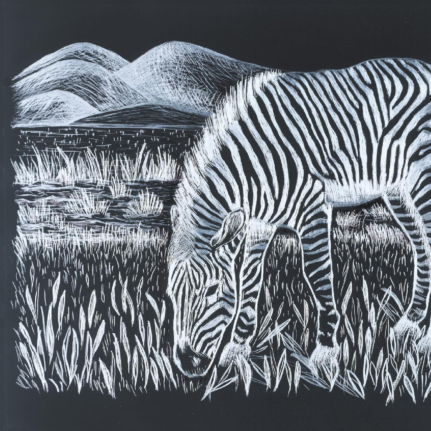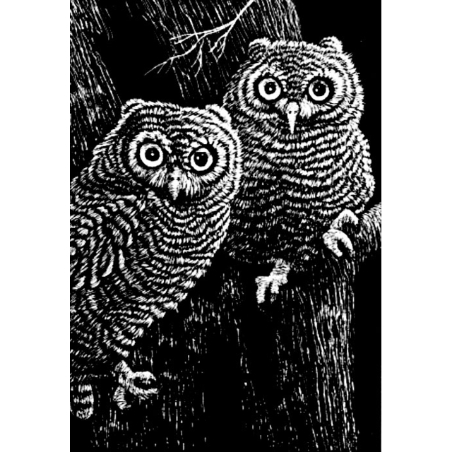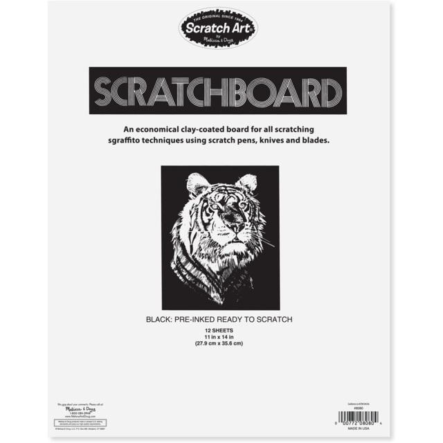 Scratch-Art Scratchboards are flexible 10pt or 12pt cardboard which has been coated with a unique, flexible, thin white clay film over which a special  coating has been applied. By using Scratch Knives the top coating is scratched to reveal the contrast of the coating below. The flexibility of the sheet and the clay coating help to prevent accidental cracking or chipping when handling or cutting.